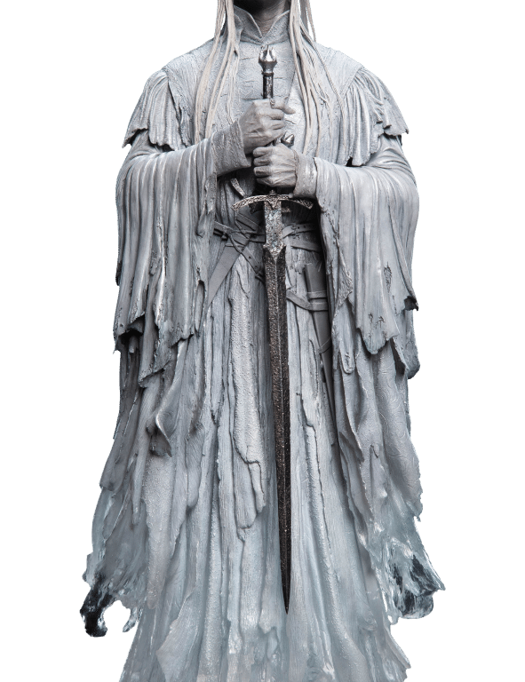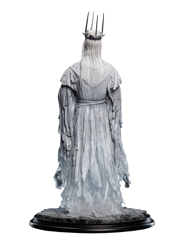 Wētā Workshop was intrinsically involved in the design and physical effects manufacture for all three films of The Lord of the Rings™ trilogy. In the depths of the pitch-black night, veiled by darkness, only the sporadic glimmers of moonlight upon grim blades betrayed their lurking presence. In dire need of refuge, Frodo, with haste, surrendered his destiny to the One Ring. But solace did not greet him. Rather, he beheld a pale and spectral sight: echoes of ages past, haunting and ethereal. Amidst the Unseen Lands, only the sickening radiance of the wraiths endured. Renowned sculptor Brigitte Wuest, known for her skills across Middle-earth characters, crafted the impeccable Classic Series Ringwraith of Mordor collectible, capturing the menace of Sauron’s chief servant, particularly in the hyper-realistic detailing of the Ringwraith’s ancient cloak.