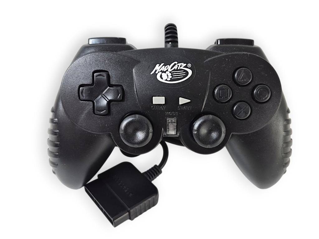 DESCRIPTION: This Mad Catz third-party controller provides a budget-friendly alternative to official PlayStation controllers. Designed with a familiar layout, it offers comfortable gameplay for a wide range of titles. Ideal as a spare controller or for multiplayer sessions without needing original hardware.