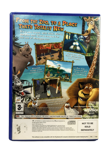 MADAGASCAR The Video Game for SONY PlayStation 2/ PS2. This preowned game comes includes case + cover + game disc. Some light superficial markings / cosmetic scratches, but these are very minor imperfections which do not affect game play in any way. Please note that the MANUAL IS NOT INCLUDED in this listing, but the game is self-explanatory, and the instructions are readily available online.