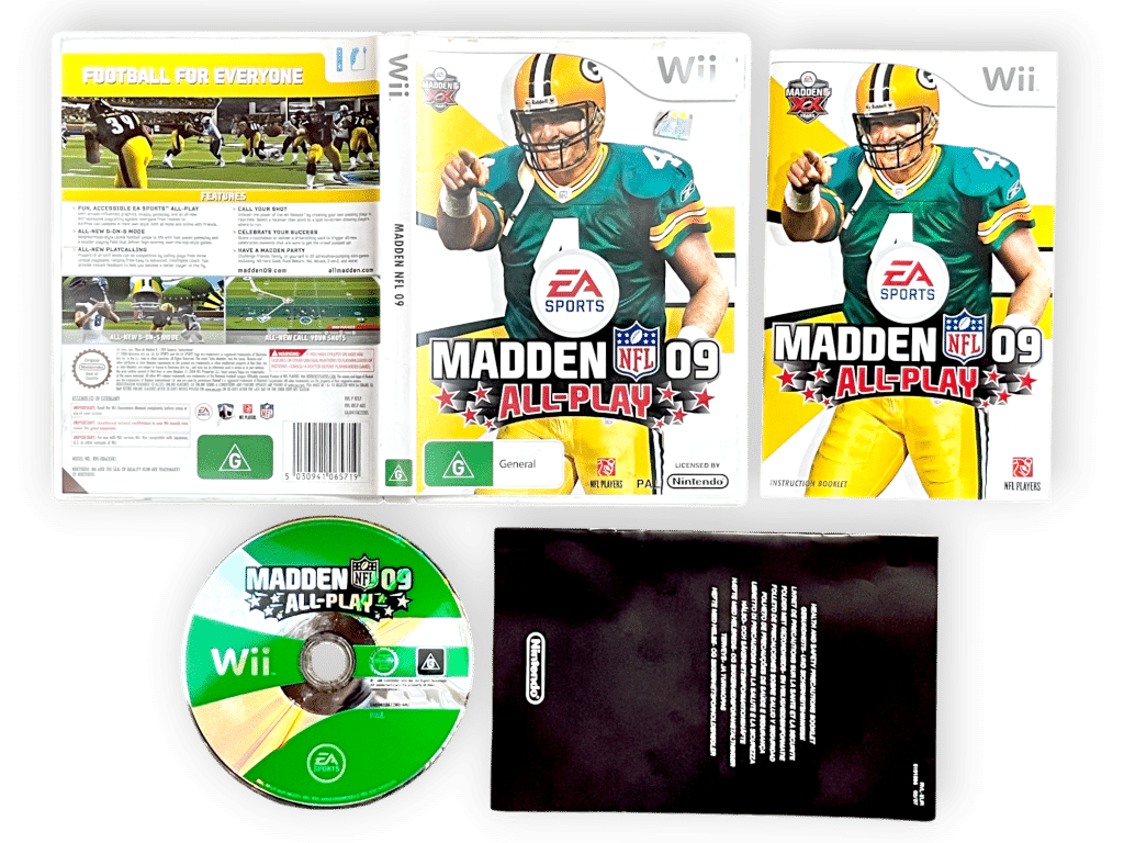 Madden NFL 09 All-Play (RARE Wii) *EXCELLENT & COMPLETE*. Rare American Football Game in excellent condition and 100% complete with contents. Madden NFL 2009 All-Play Edition with Move Simulated features for Nintendo Wii. This Pre-Owned Game is in lovely condition and complete with pictured contents. Refer photographs. .