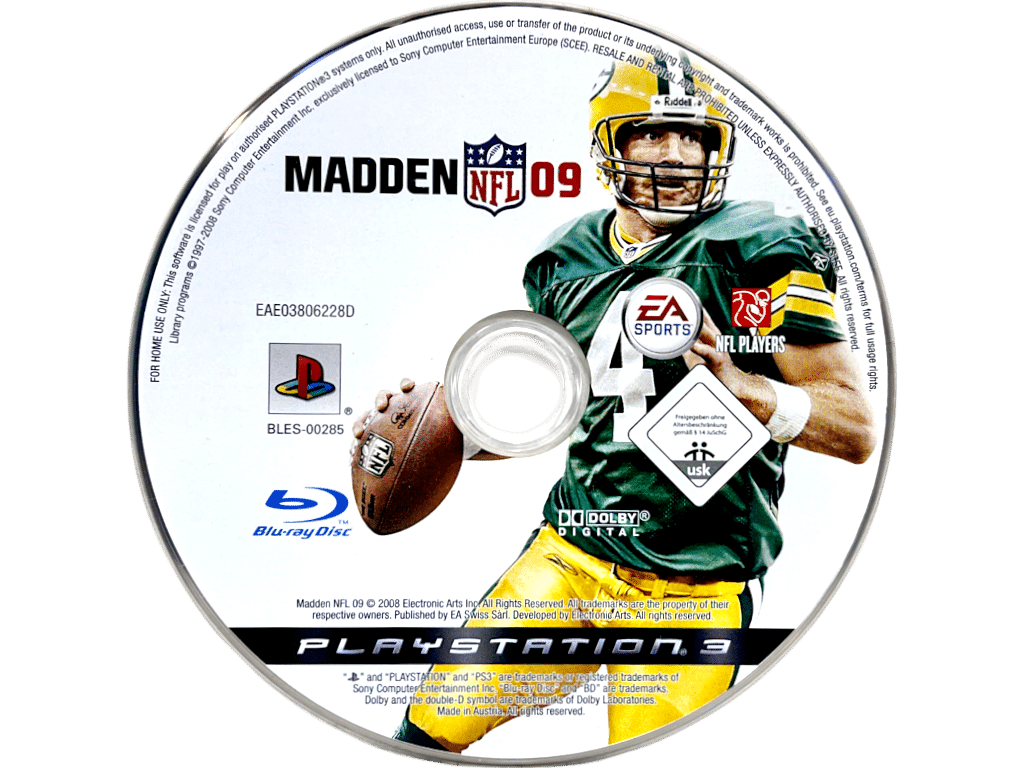 MADDEN NFL 09 (PS3). This preowned SONY PlayStation 3 game disc is in excellent condition and comes complete with pictured case + cover + manual / booklet.