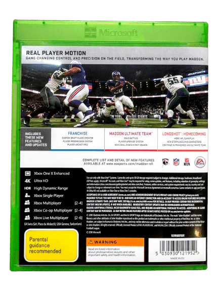 Excellent Condition & 100% Complete with contents: Madden NFL 19 / MADDEN 19 / MADDEN 2019 / MADDEN 2K19 for XBox One. This preowned game is in superb condition, and comes complete with case, cover, carded insert, and game disc.