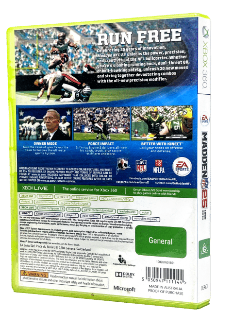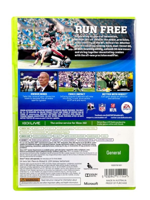Excellent Condition & 100% Complete with contents: Madden NFL 25 / MADDEN 25 for XBox 360. This preowned game is in superb condition and comes complete with case, cover, manual / booklet, and game disc.