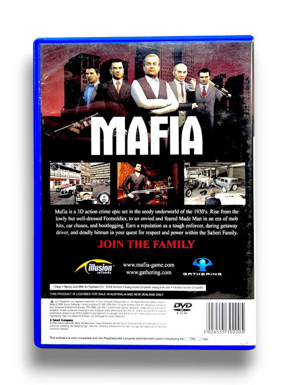 Mafia: The Game takes players deep into the criminal underworld of 1930s America. Step into the shoes of Tommy Angelo, a taxi driver who becomes entangled with the Salieri crime family. Experience a gripping story of loyalty, betrayal, and organized crime set in a beautifully recreated open-world city. With a cinematic presentation, detailed period vehicles, and realistic environments, Mafia offers an immersive narrative-driven experience for fans of action and strategy.