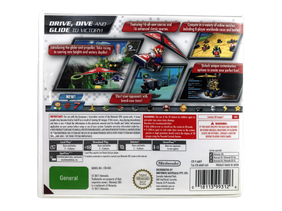 The newest installment of the fan-favorite Mario Kart franchise brings Mushroom Kingdom racing fun into glorious 3D. For the first time, drivers explore new competitive kart possibilities, such as soaring through the skies or plunging to the depths of the sea. New courses, strategic new abilities and customizable karts bring the racing excitement to new heights.