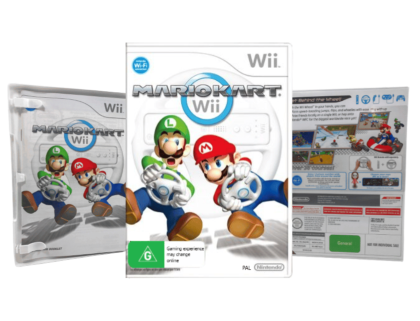 MARIO KART / MARIOKART / MARIO-KART for NINTENDO Wii. This preowned game is in excellent condition With only the faintest of disc markings and hair scratches and complete with case + cover + manual / booklet + game disc.