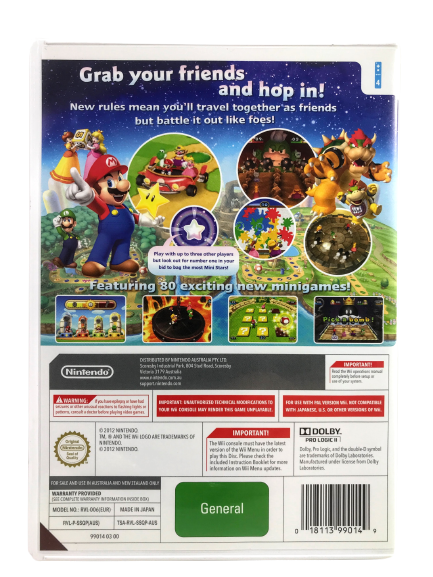 RARE FIND: Authentic NZ Edition in mint condition & 100% complete with contents: SUPER MARIO PARTY 9 for NINTENDO Wii. This game is the Official NZ / Aus Release – in pristine condition and comes complete with case, Genuine New Zealand Cover (with the signature “G” Classification embedded in the cover art), manual / booklet, and game disc. A tidy and complete collector’s item.