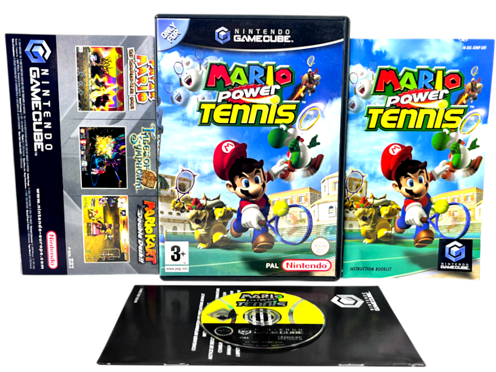 Excellent condition & 100% complete with contents: MARIO POWER TENNIS for Nintendo GameCube. This preowned game comes complete with case + cover + manual / booklet + Nintendo GameCube booklet + Nintendo GameCube Catalogue Poster + game disc. A tidy and complete collector’s item.