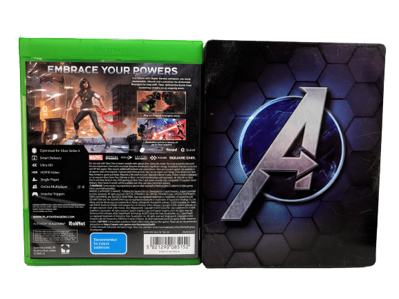LIMITED STEEL CASE COLLECTOR’S EDITION: MARVEL’S AVENGERS / Marvel Avengers for Xbox One™ and Xbox Series X™. Very good condition, with Steelbook, game case, and game disc. Disc mint. Front of steelbook excellent. Back of steelbook has some cosmetic imperfections, but these are minor and superficial only. A tidy collector’s item. Refer photographs.