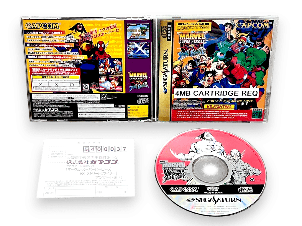 Marvel Super Heroes vs. Street Fighter (Sega Saturn, Japanese). This pre-owned Sega Saturn game is a genuine NTSC-J (JAPANESE) Region Edition, which We’ll play only in Japanese Sega Saturn consoles or in New Zealand consoles that have been modified to play multi-region game discs and more specifically Japanese NTSC-J region game discs. This Sega Saturn game is in excellent condition. and includes pictured contents.