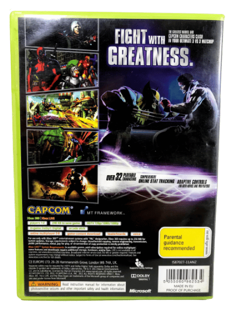 Excellent condition & 100% complete with contents: Marvel vs Capcom 3 Fate of Two Worlds for Xbox 360. This preowned game is in superb condition and comes complete with case, cover, manual / booklet, and game disc.