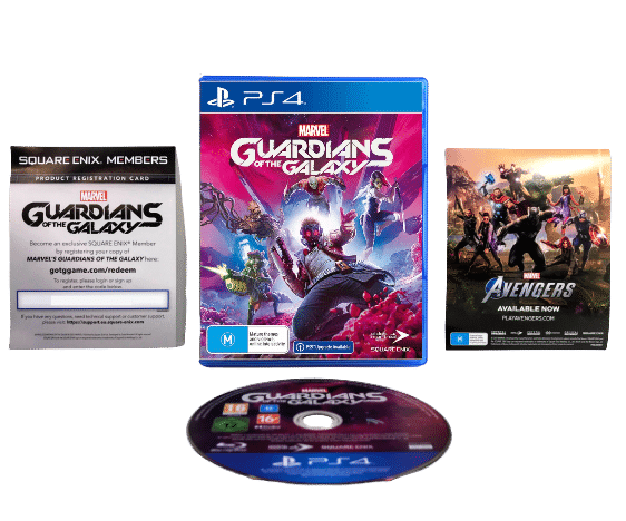 Excellent condition & 100% complete with contents: Marvel Guardians of the Galaxy for SONY PlayStation 4 / PS4. This preowned game comes complete with case, cover, carded inserts, and game disc.