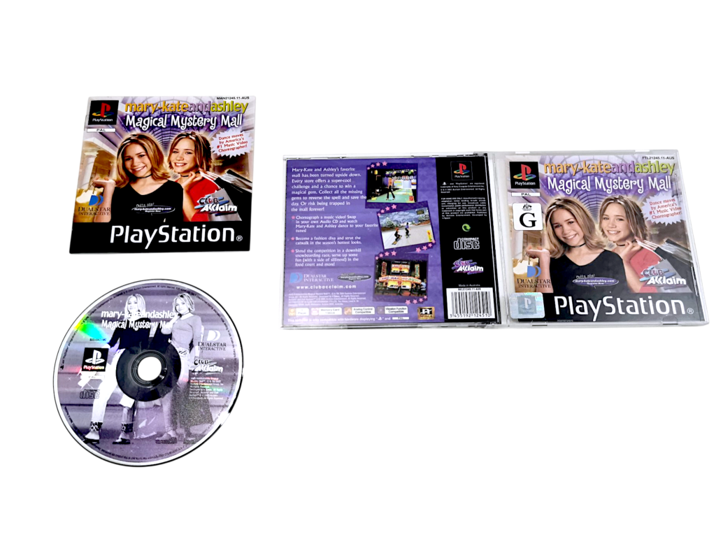 Mary-Kate and Ashley: Magical Mystery Mall (PS1). This pre-owned Sony Playstation game (PS1 game) is in good condition with mild markings and light surface scratches only, which are purely cosmetic and do not hinder performance or gameplay in the slightestThis game includes the pictured contents; refer to the photographs.