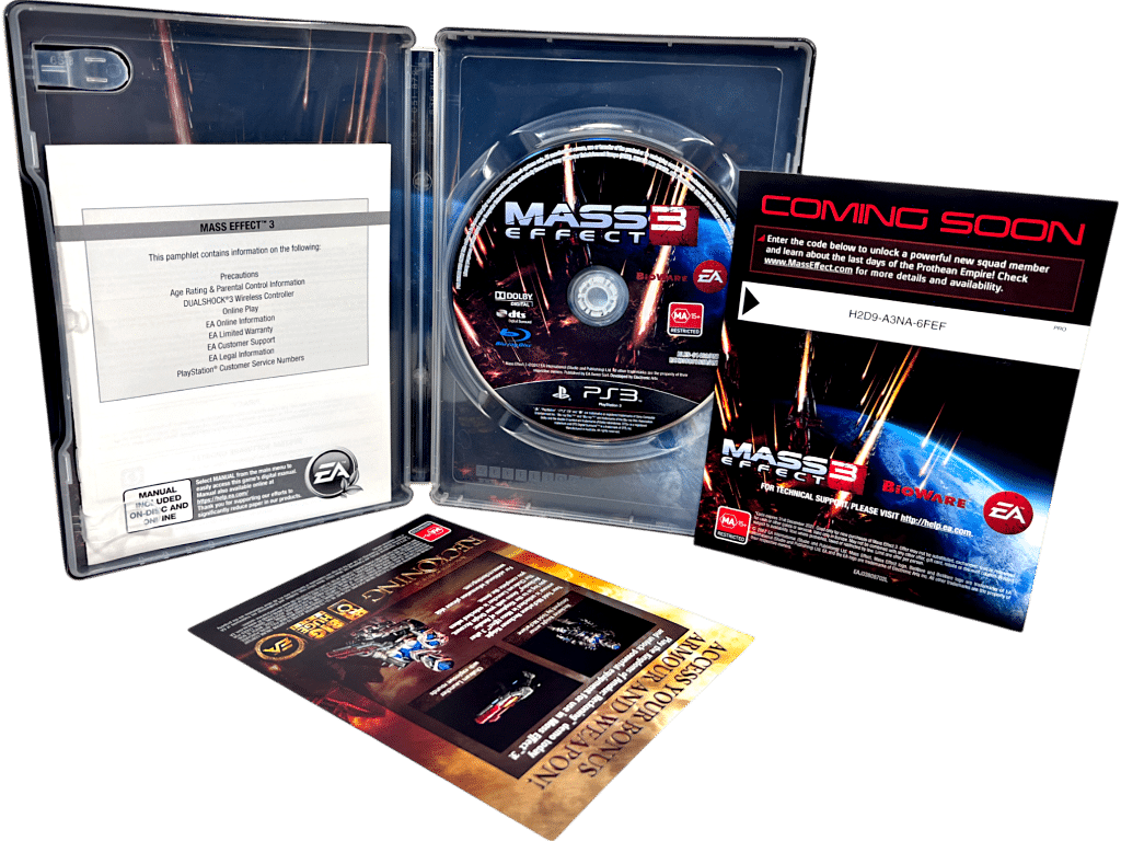 Mass Effect 3 STEEL COLLECTOR’S EDITION for SONY PlayStation 3. This preowned authentic Limited Steelbook Collector’s Edition is in excellent condition and includes manual / booklet, promo card, and game disc.