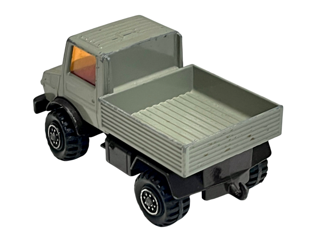 DESCRIPTION: The Mercedes-Benz Unimog is an iconic off-road utility truck widely used for farming, forestry and construction tasks. This die-cast model captures the rugged design of the Unimog with its elevated chassis, large tyres and practical cargo bed. Toy versions of the Unimog have long been popular with collectors due to the vehicle’s distinctive appearance and real-world versatility. The sturdy construction and simple rolling wheel design make it both a display piece and a durable toy vehicle. Whether included in a farm vehicle collection or a construction-themed display, the Unimog represents one of the most recognisable multipurpose trucks ever produced.