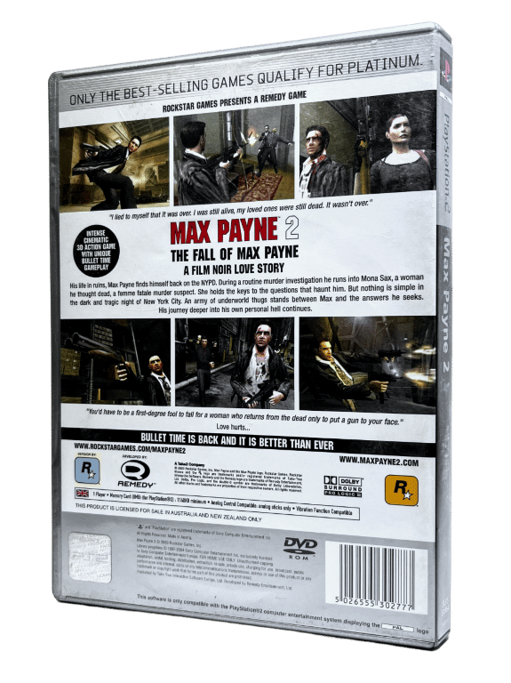 Excellent condition & 100% complete with manual: MAX PAYNE 2 The Fall of Max Payne for SONY™ PlayStation 2 / PS2. This preowned game is in superb condition and comes complete with case + cover + manual / booklet + game disc. Still with original price sticker on the case.