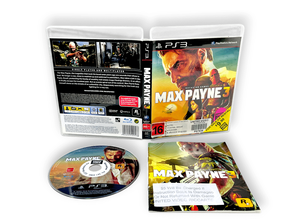 Excellent Condition & 100% Complete with Contents: MAX PAYNE 3 for SONY PlayStation 3 / PS3. This game is in superb condition and comes complete with pictured ex-rental case, cover, manual / booklet, and game disc. Stickered contents from rental store.