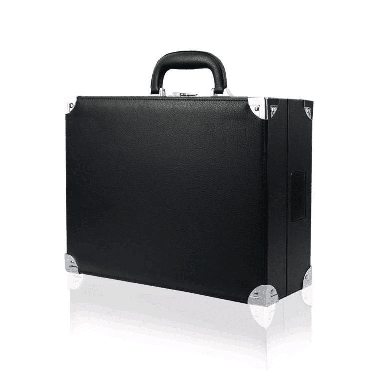 The hand-made suitcase with stitching line, PU leather package reflects the elegant workmanship. The inner lid equipped with red matte fabric clothes, trunk switch, enabling storage and minimizes dust. Whether at home or as a gift, it reflects the beautiful history and taste of vinyl recorded music.