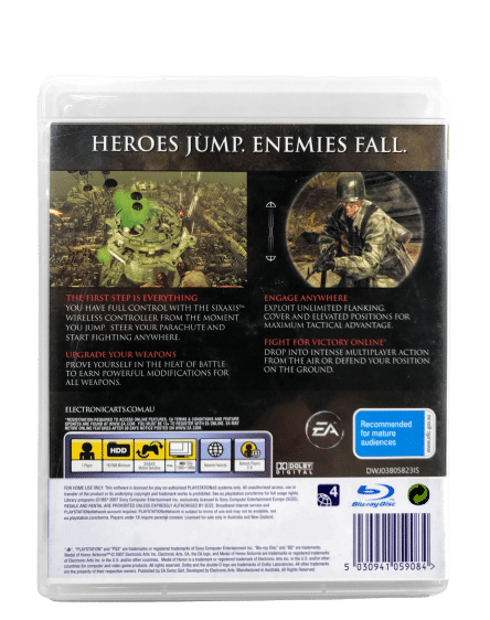 MEDAL OF HONOR AIRBORNE (Medal of Honour Airborne) for SONY PlayStation 3 / PS3. This preowned game is in good condition and includes case + cover + game disc. Please note that the MANUAL IS NOT INCLUDED in this listing, but the game is self-explanatory, and the instructions are readily available online.