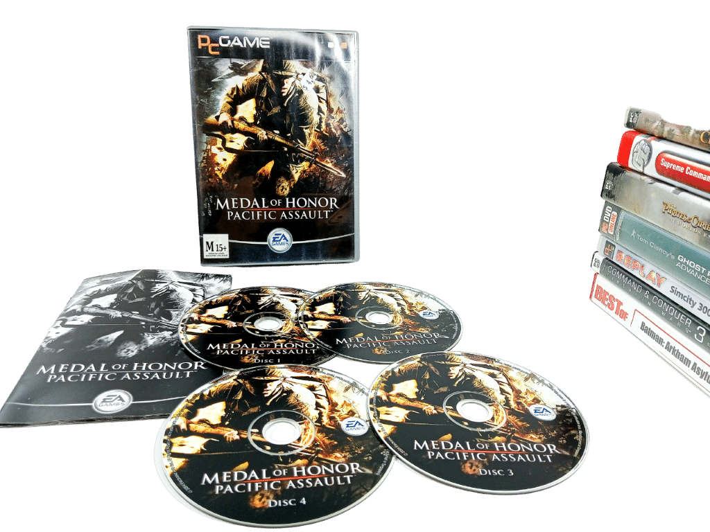 Medal of Honor Pacific Assault (PC) game. This preowned PC game is in excellent condition and includes pictured case + contents. Any keycodes will have been used, so buyer may need to access a new keycode online.
