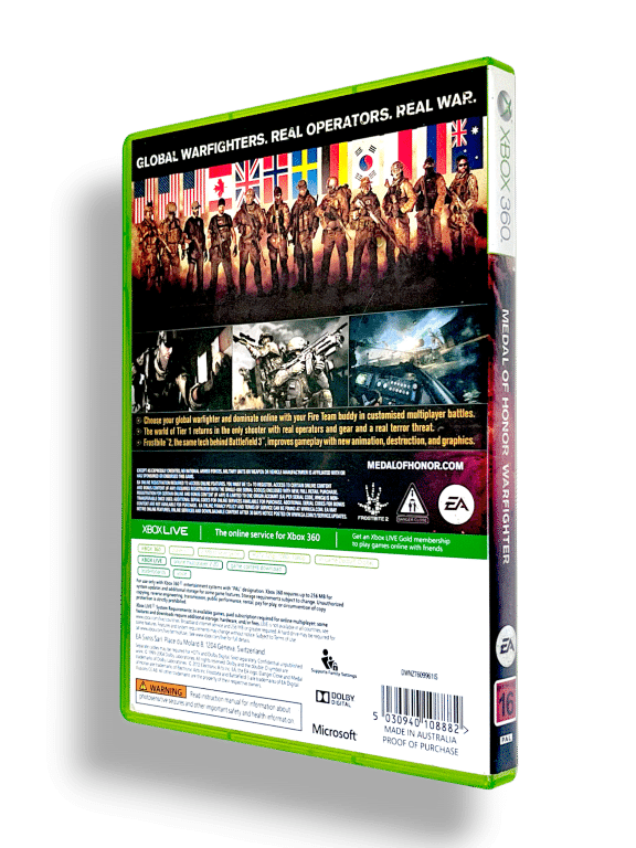 Written by active U.S. Tier 1 Operators while deployed overseas and inspired by real world threats, Medal of Honor Warfighter delivers an aggressive, gritty, and authentic experience that puts gamers in the boots of today’s most precise and disciplined warrior. Medal of Honor Warfighter is an up close and personal look at today’s battlefield and the fight against the ongoing global terror threat.