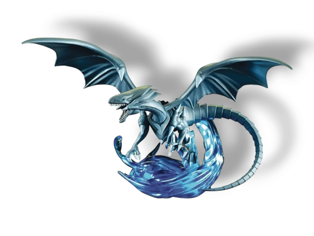 This is a high-quality, non-articulated collectible figure of the iconic Blue-Eyes White Dragon from the anime series Yu-Gi-Oh!.