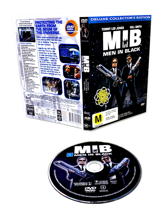 Men in Black Deluxe Collectors Edition DVD. This preowned item is in excellent condition and complete with original case + cover + any pictured internal cards / booklets + disc/s. Refer photographs.