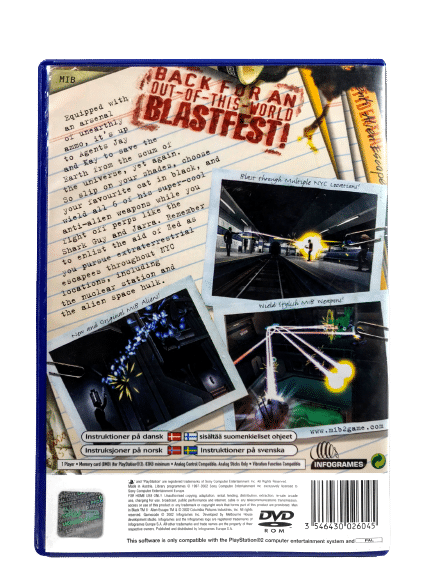 Excellent condition: MEN IN BLACK 2 ALIEN ESCAPE for SONY PlayStation 2 / PS2. This preowned game is in superb condition, and includes case, cover, and game disc. Please note that the MANUAL IS NOT INCLUDED in this listing, but the game is self-explanatory, and the instructions are readily available online.