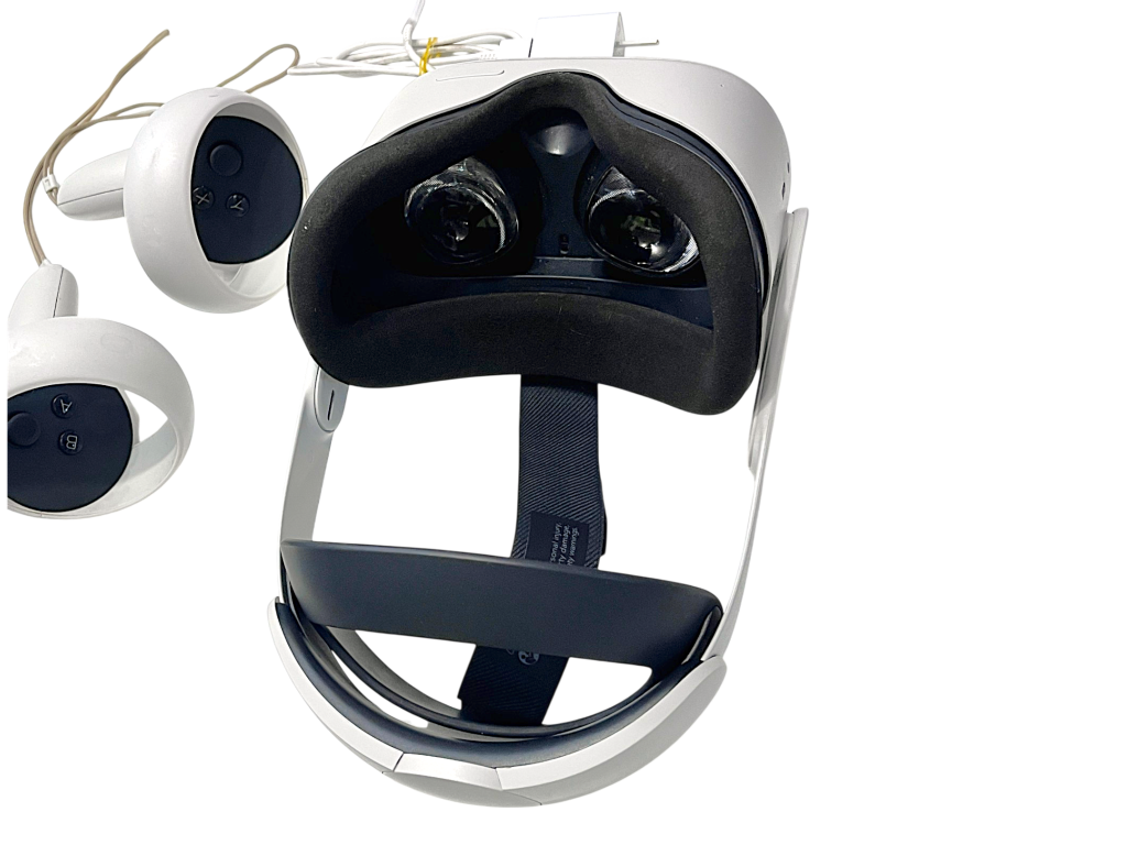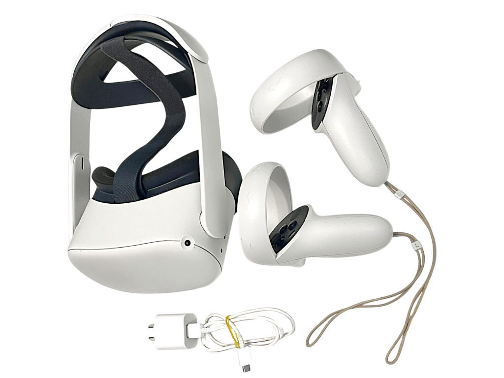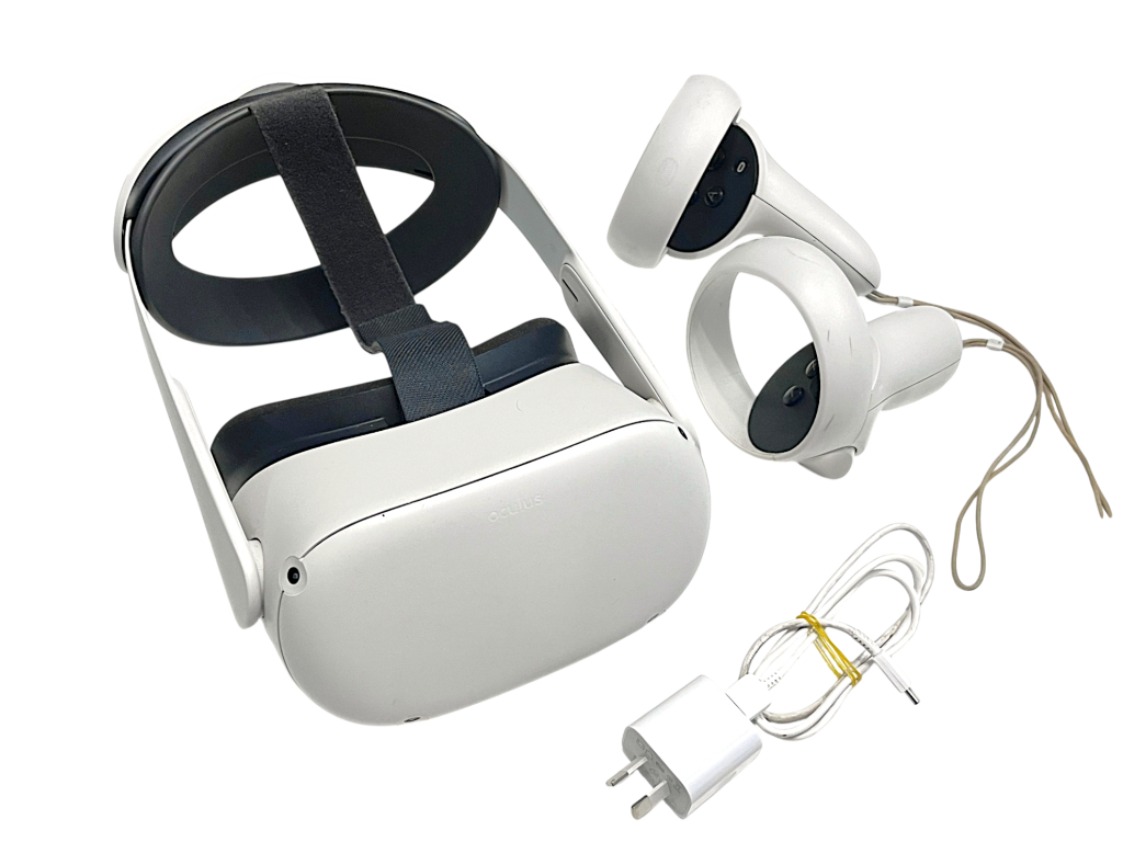 Meta Quest 2 VR Headset & Controllers Bundle. This preowned MetaQuest 2 Headset + Controllers + Charger bundle is in good condition. Refer photographs.