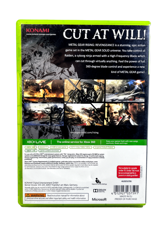 METAL GEAR RISING: REVENGEANCE takes the renowned METAL GEAR franchise into exciting new territory by focusing on delivering an all-new action experience unlike anything that has come before.. Combining world-class development teams at Kojima Productions and PlatinumGames, MGR REVENGEANCE brings two of the world’s most respected teams together with a common goal of providing players with a fresh synergetic experience that combines the best elements of pure action and epic storytelling, all within the expansive MG universe. The game introduces Raiden as the central character; a child soldier transformed into a half-man, half-machine cyborg ninja, equipped with a high-frequency katana blade and a soul fueled by revenge.
