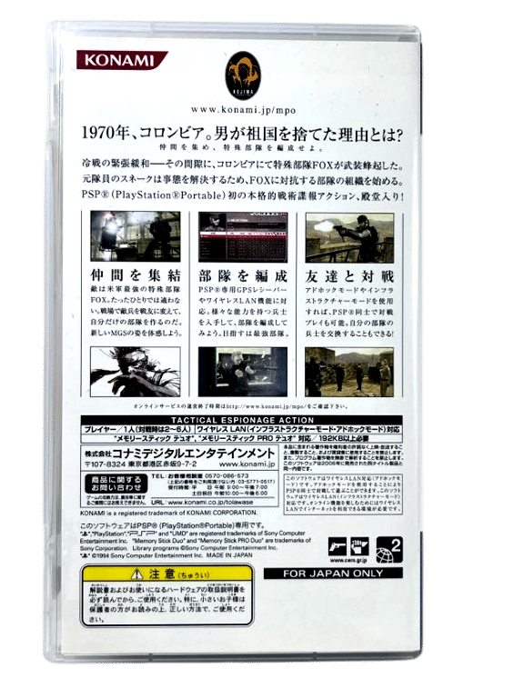 Japanese PSP game in Mint Condition & 100% Complete with Contents: Metal Gear Solid Portable Ops for SONY PSP / Playstation Portable.
