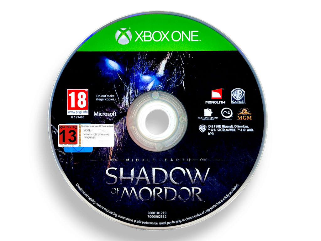 Middle-earth: Shadow of Mordor (Xbox One). This preowned game disc is in very good condition with only mild disc surface imperfections. This game disc comes inside an empty blank case. Please note that the original case is not included.