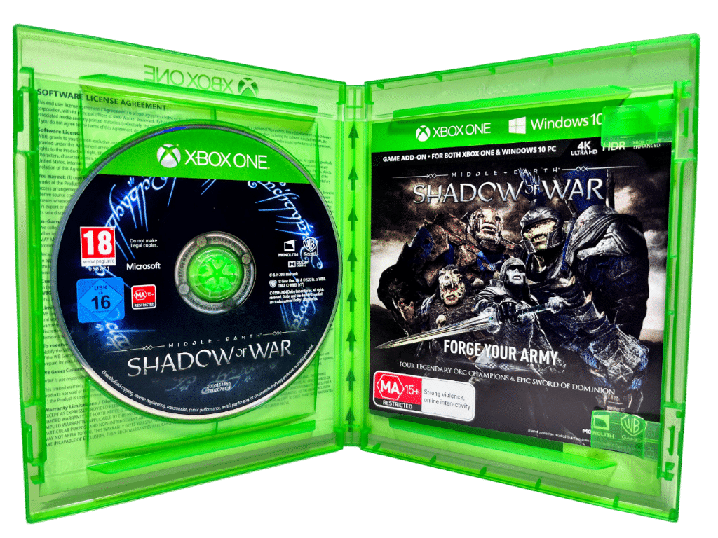Excellent condition & 100% complete with contents: Lord of the Rings: MIDDLE-EARTH SHADOW OF WAR / The Lord of the Rings MiddleEarth Shadow of War for Xbox One. This preowned game comes complete with case, cover, promo card, and game disc.