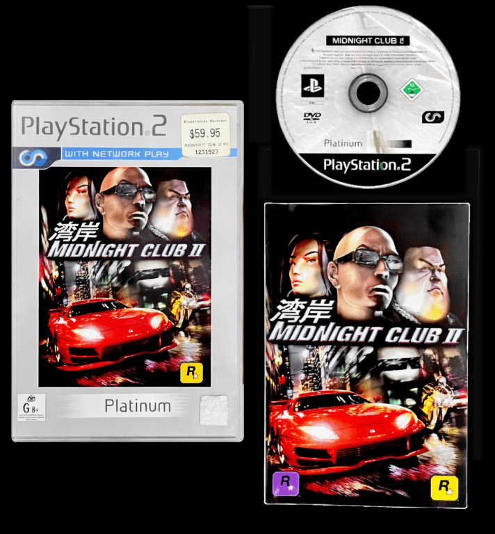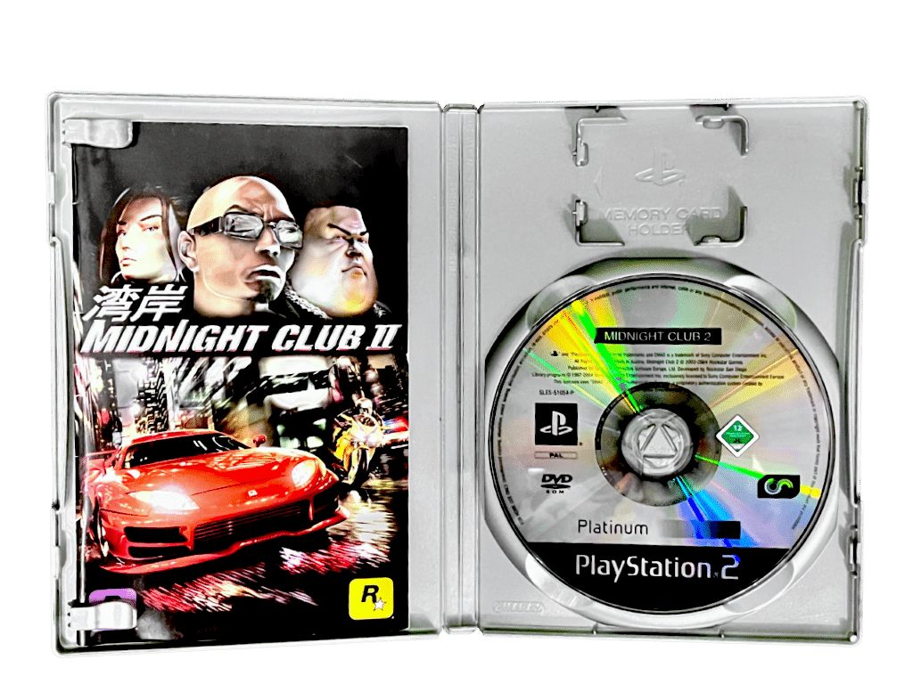 Midnight Club 2 (Midnight Club II) for SONY PlayStation 2 / ps2. This preowned game is in very good condition and comes complete with genuine Platinum Edition case, cover, instruction manual booklet, and game disc. The faintest of superficial markings and ghost scratches on the disc, but these are extremely minor and purely cosmetic and do not hinder gameplay or performance in the slightest.