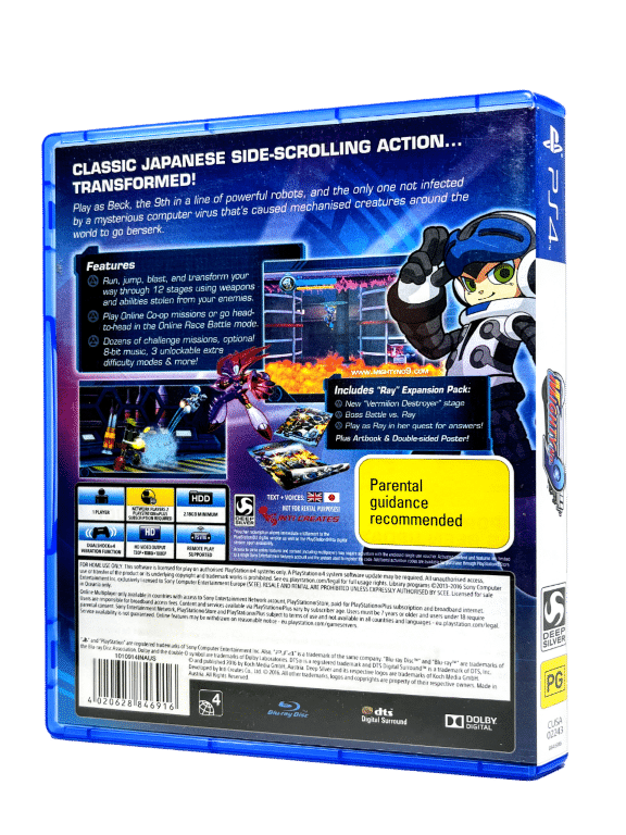 MIGHTY NUMBER 9 / Mighty No 9 for SONY PlayStation 4 / PS4. This preowned game is in superb condition, and includes BOTH Manual / Booklet AND LARGE COLLECTOR’S POSTER + game disc.