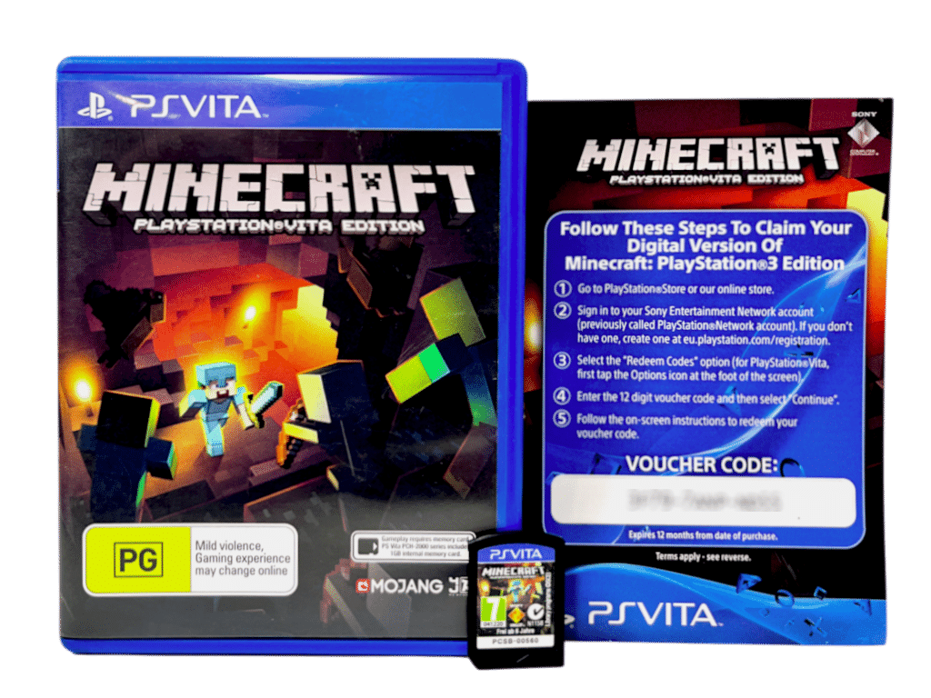 Mint Condition & 100% Complete with Contents: MINECRAFT for SONY PlayStation Vita / PS Vita. This preowned game comes complete with case, cover, carded insert, and game cartridge. A tidy and complete collector’s item.