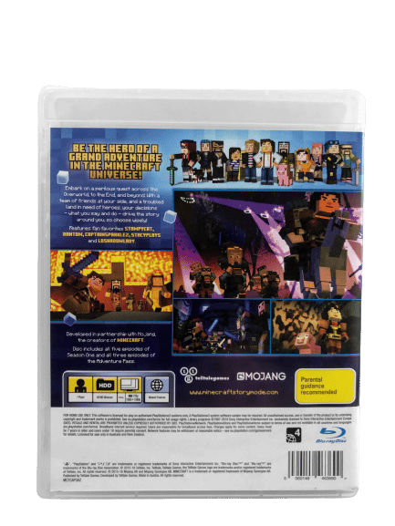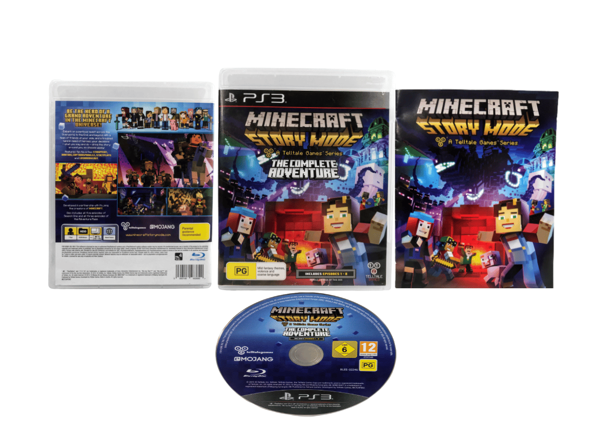 RARE Children’s game in Excellent condition & 100% complete with contents: Minecraft Story Mode The COMPLETE ADVENTURE / Minecraft Story Mode The Telltale Games Series: The Complete Adventure for SONY PlayStation 3 / PS3. This preowned game comes complete with case, cover, manual / booklet, and game disc.