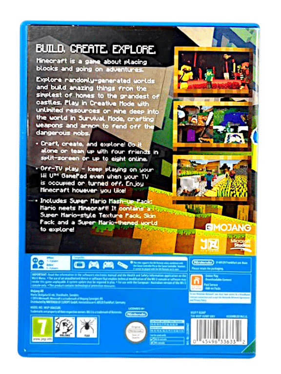 Rare PAL Region Edition (plays perfectly in NZ Wii U Consoles) in excellent condition & 100% complete with contents: MINECRAFT Featuring Mario for Nintendo Wii U. This preowned game is in superb condition and comes complete with case, cover, 2 x booklets, and game disc. The only imperfection I could find anywhere was on the back of the paper cover where I spotted one tiny paper hole along the edge. But this is purely cosmetic, and all other contents are superb.