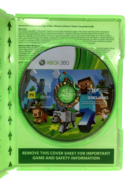 MINECRAFT / Mine Craft for XBox 360. This preowned game disc is in excellent condition and comes complete with case + cover + game disc. One small scuff mark on the disc, but this is minor and purely cosmetic, and does not affect gameplay or performance in any way.