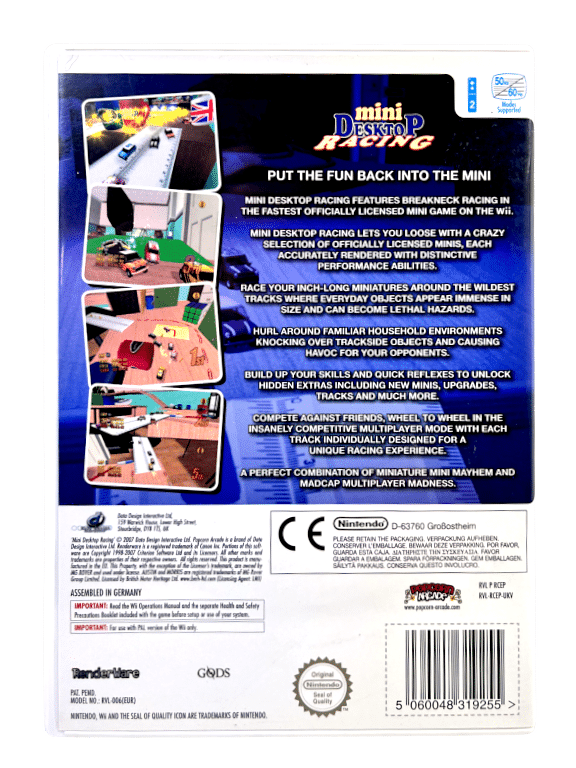 Mini Desktop Racing for Nintendo Wii. This preowned game is in excellent condition and includes case + cover + game disc. Please note that the manual is not included in this listing, but the game is self-explanatory, and the instructions are readily available online.