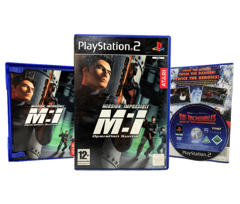 Good condition and 100% complete with contents: Mission Impossible: Operation Surma for SONY PlayStation 2 / PS2. This preowned game comes complete with case, cover, manual / booklet, and game disc. I spotted a small paper tear at the top of the cover (not pictured), and some very faint markings and superficial scratches on the disc but these are extremely minor and purely cosmetic imperfections which do not affect game play in any way.