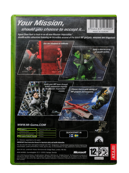 Excellent condition and 100% complete with contents: Mission Impossible: Operation Surma for Original Xbox. This preowned game comes complete with case, cover, manual / booklet, and game disc. Very fine superficial markings / cosmetic scratches, but these are extremely minor imperfections which do not affect game play in any way, and all other contents are superb.