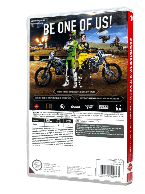 Monster Energy Supercross – The Official Videogame 3 for Nintendo Switch. Mint condition and complete with case + cover + game cartridge.
