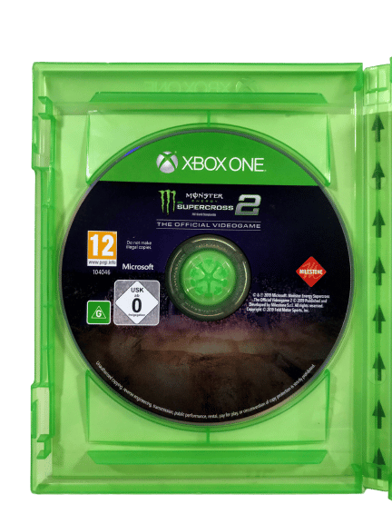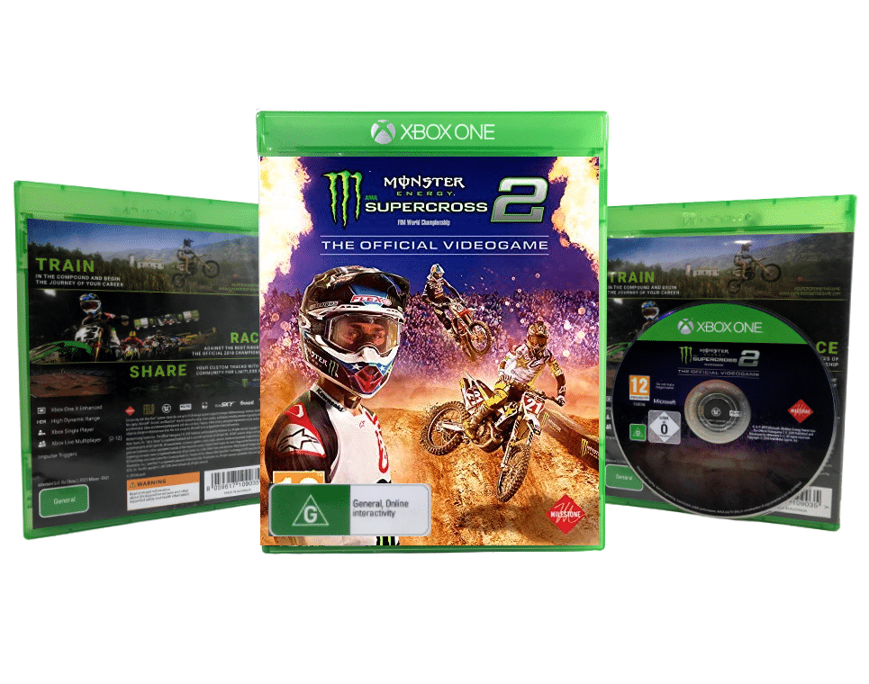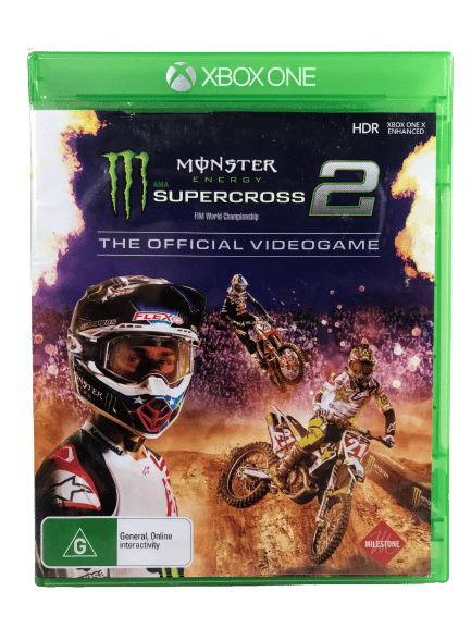 Excellent condition & 100% complete with contents: Monster Energy Supercross – The Official Video Game 2 (Monster Energy Supercross 2 / Monster Energy Supercross II) for Xbox One. This preowned game is in Excellent Condition and comes complete with case, cover, and game disc. No booklet was ever printed or released with this game, but the game is self-explanatory, and the instructions are readily available online.