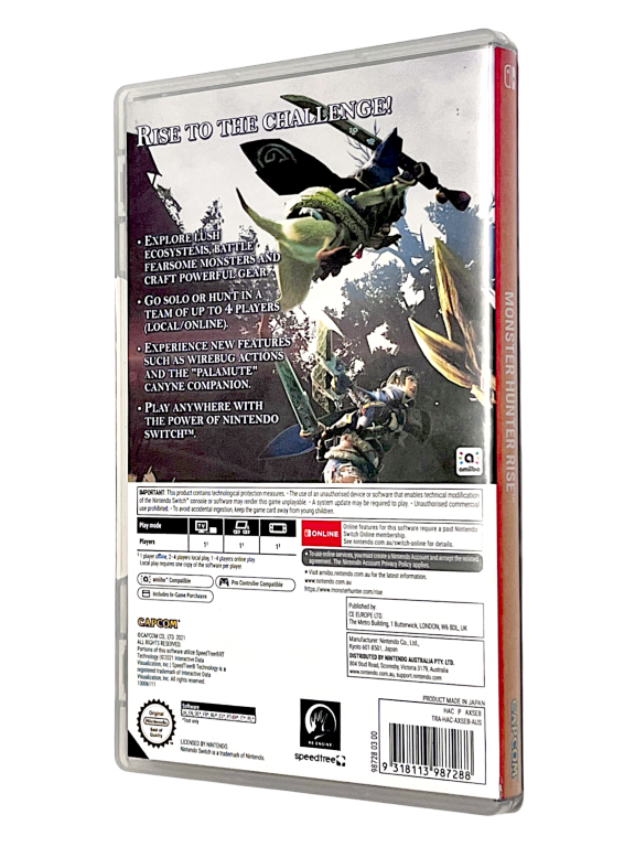 Monster Hunter Rise (Nintendo Switch)This pre-owned Nintendo Switch game is in excellent condition and comes complete with case, cover, and game cartridge.