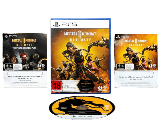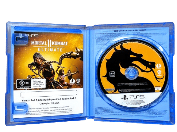 Mint condition & 100% complete with contents: MORTAL KOMBAT 11 ULTIMATE for SONY PlayStation 5 / PS5. This preowned game is AS NEW – and comes complete with case, cover, BOTH BRAND NEW UNUSED DLC VOUCHERS + the full game on disc.