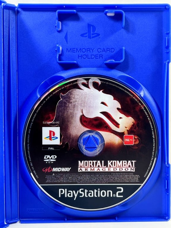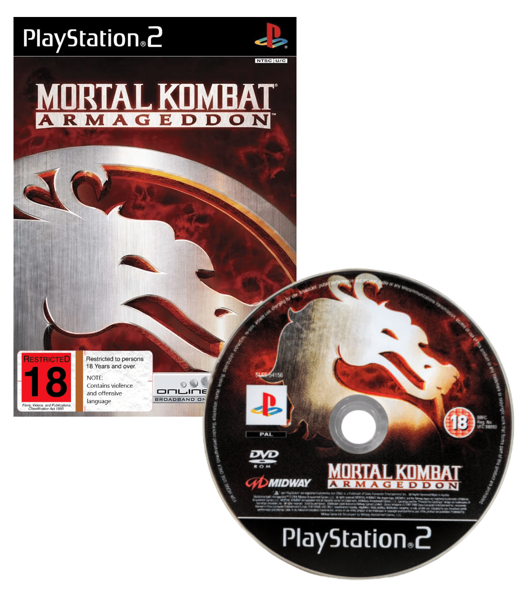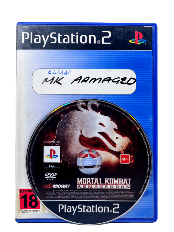 MORTAL KOMBAT ARMAGEDDON for SONY PlayStation 2 / PS2. This preowned game disc is in Excellent Condition and comes inside Case with EB Games paper cover (not original paper cover).
