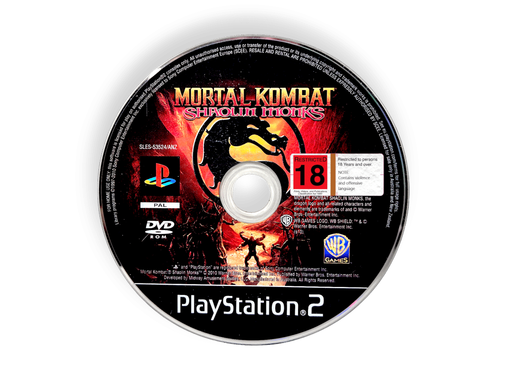 Genuine PAL (NZ/AUS Region) game: MORTAL KOMBAT SHAOLIN MONKS for SONY PlayStation 2 / PS2. This preowned game disc is in very good condition and comes inside an empty blank case. Please note that the original case is NOT included.
