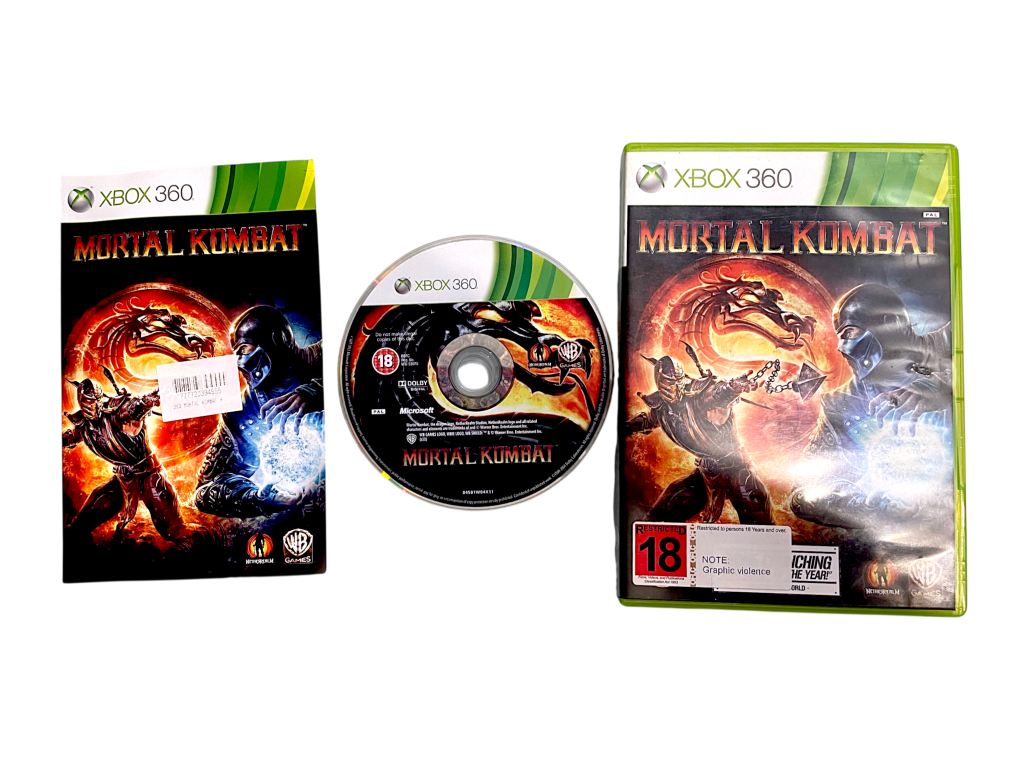 Mortal Kombat (Xbox 360). This pre-owned game is in good condition with mild disc surface imperfections only which do not hinder gameplay or performance in any way. This game includes the pictured case and contents. Refer to the photographs.