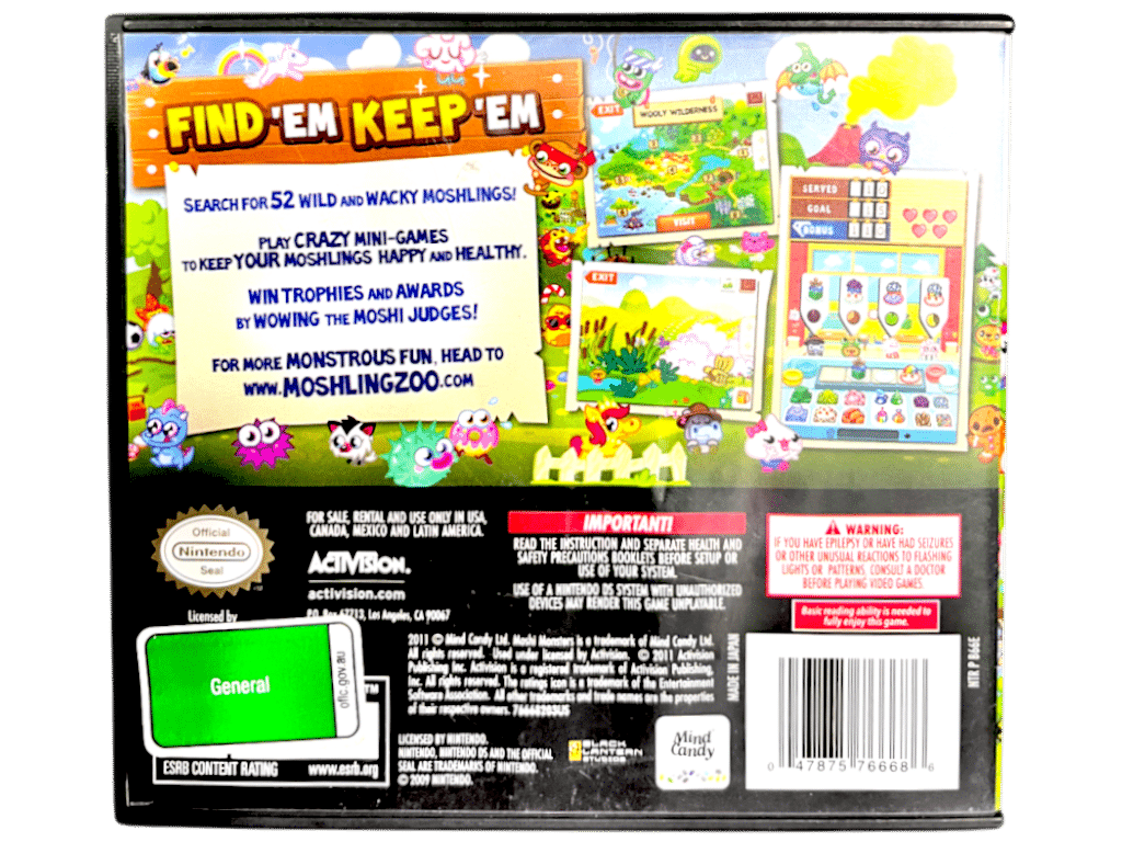 Moshi Monsters Moshling Zoo for Nintendo DS. This preowned NDS game cartridge is in excellent condition and comes complete with case + cover + manual / booklet + game cartridge.